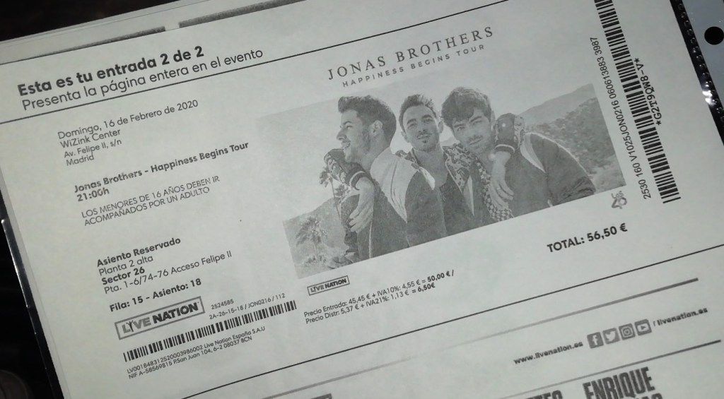 El pasado 16 de febrero el WiZink Center de Madrid acogió la visita de los Jonas Brothers, después de unos ocho meses de espera. Un soleado día acompaño a todos aquellos fans que decidieron acudir desde muy temprano al lugar de encuentro, los cuales tuvieron la oportunidad de obtener productos del merchandising del grupo. Sobre las seis y media de la tarde, las puertas del recinto comenzaron a abrirse y los visitantes pudieron acudir al pase de entradas para de esta forma poder acceder al lugar que les correspondía.