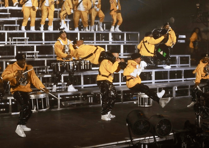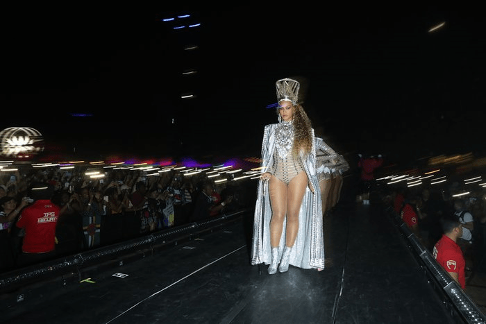 Un espectáculo en el que la fuerza y el poder de su protagonista, Beyoncé, se entrecruzaba con la energía y el ánimo de todos sus bailarines y músicos. Los cuales se encontraban distribuidos en el escenario sobre una gran plataforma con forma de pirámide. Desde la cual, la artista con un look inspirado en la faraona Nefertiti entonó algunos de sus temas.